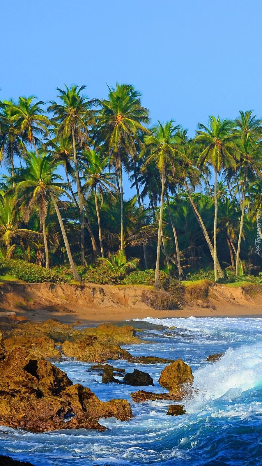 Edytor tapety: Kamienie i palmy nad wybrzeżem