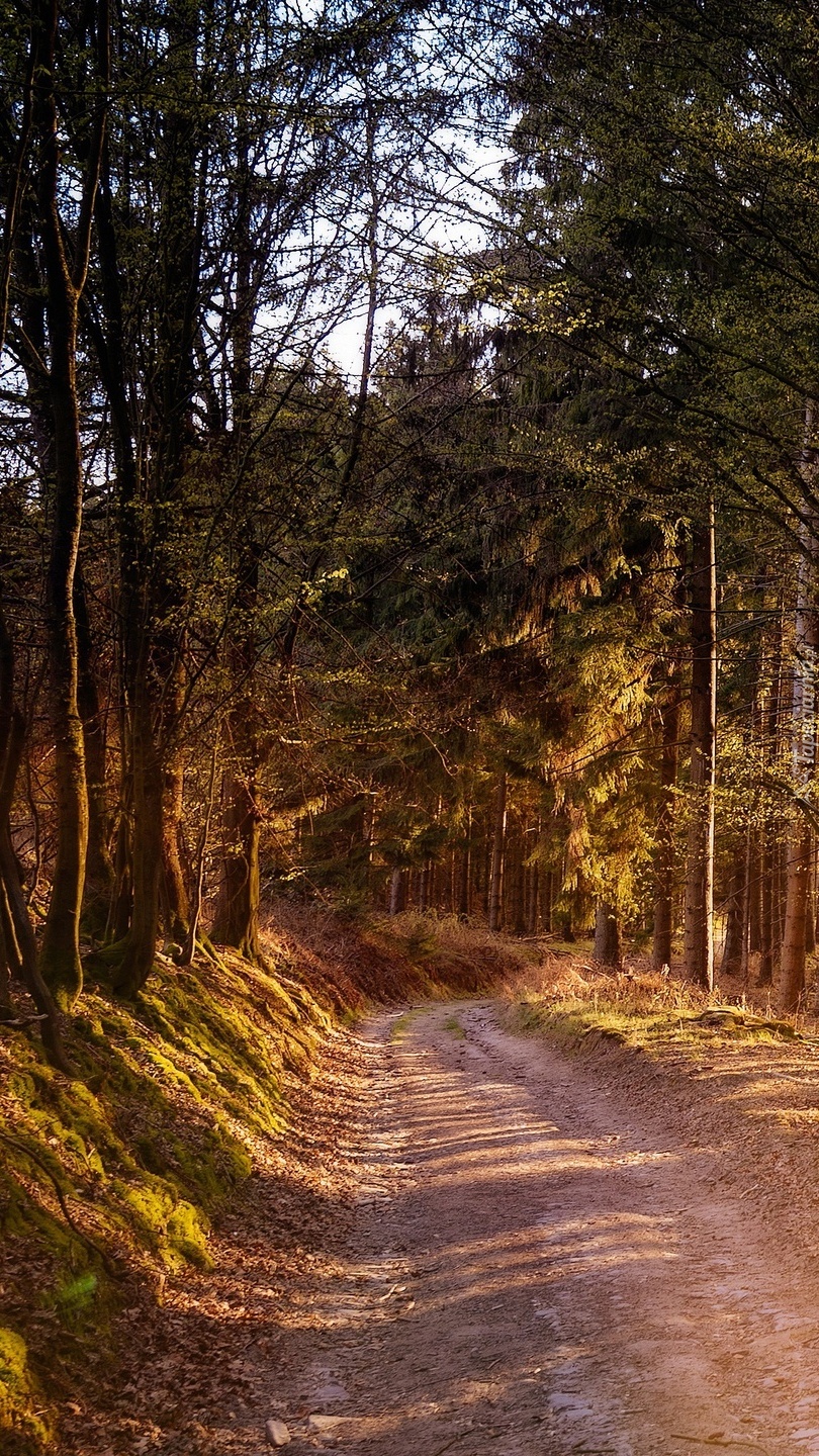 Edytor tapety: Ścieżka przez las w słonecznym blasku