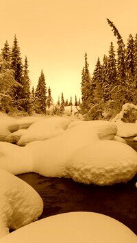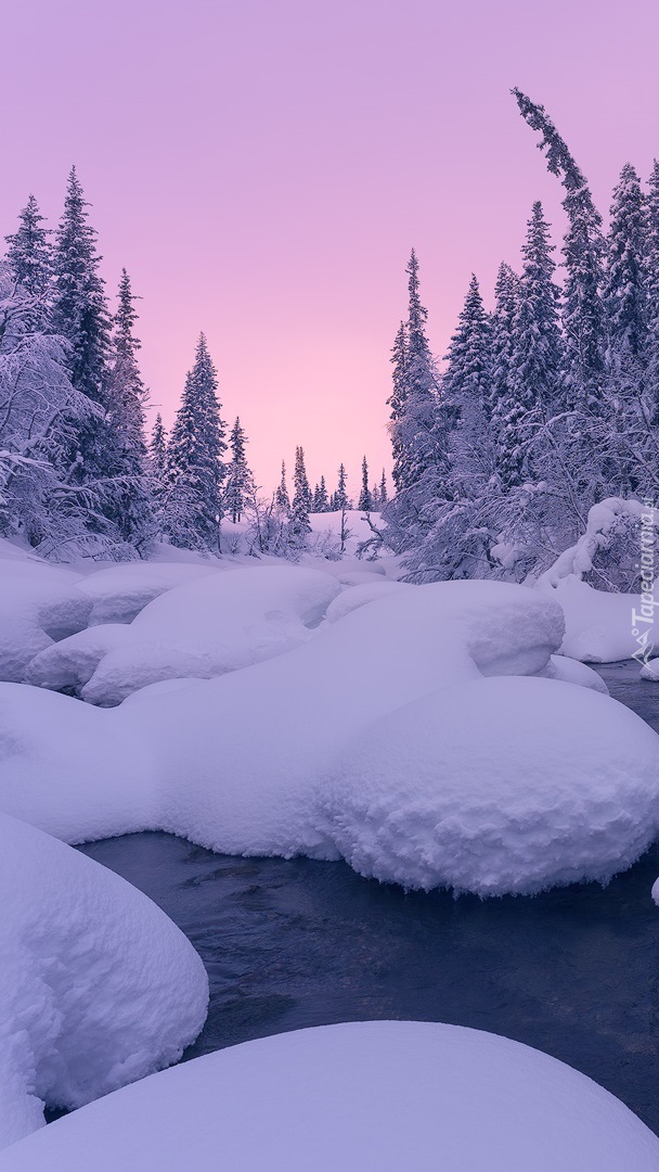 Edytor tapety: Ośnieżone drzewa nad rzeką