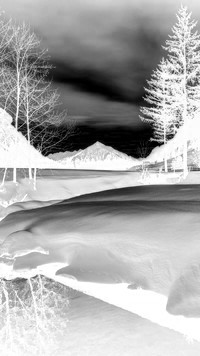 Edytor tapety: Śnieg na brzegu górskiej rzeki