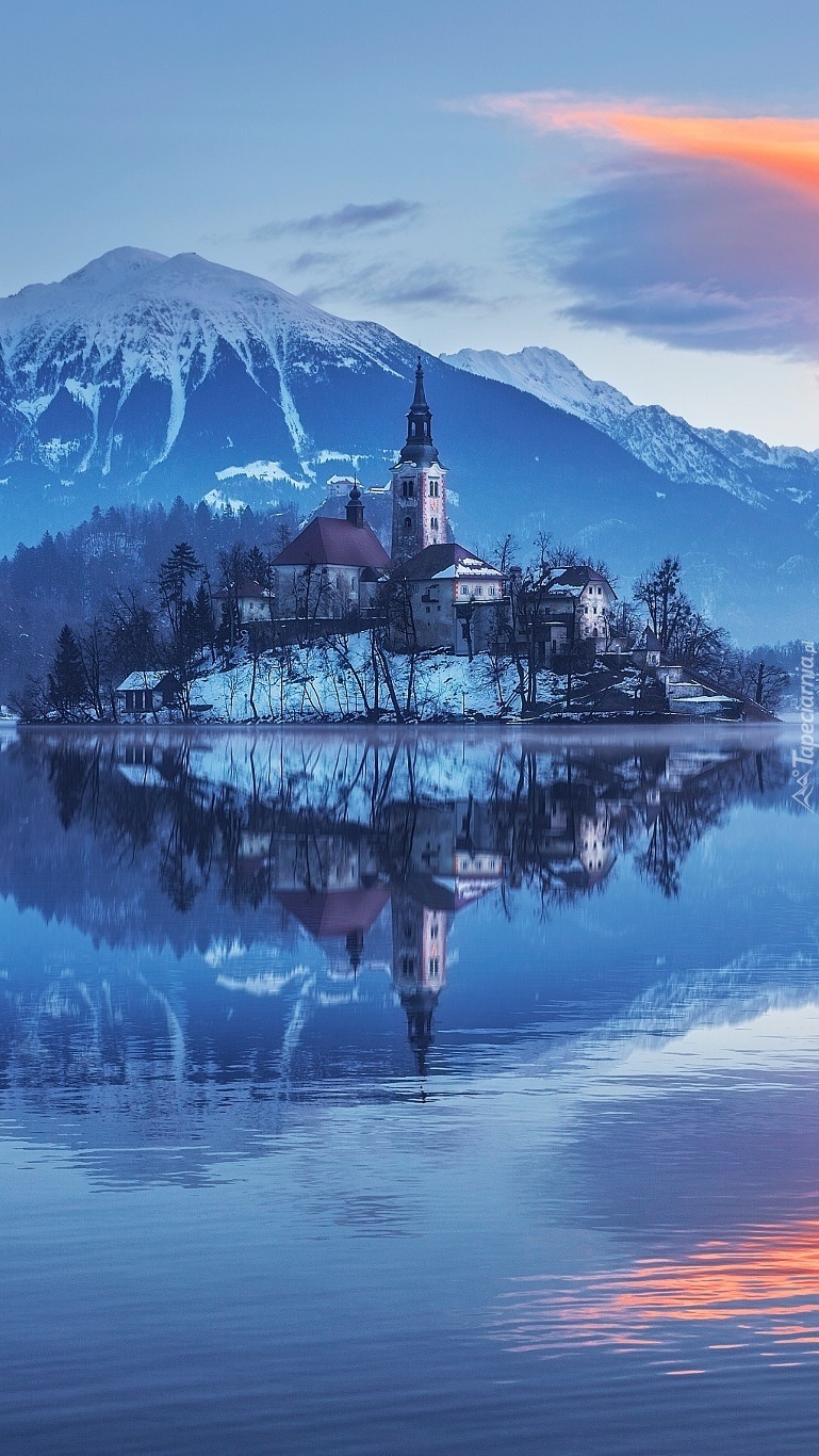 Edytor tapety: Kościółek na tle gór