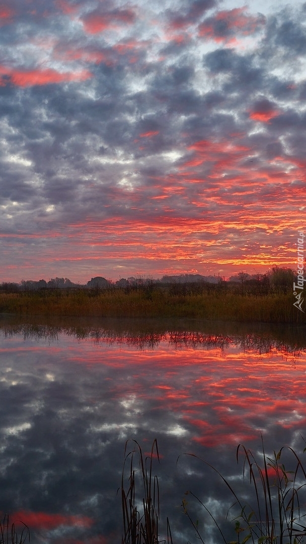 Edytor tapety: Kolorowe niebo w odbiciu stawu