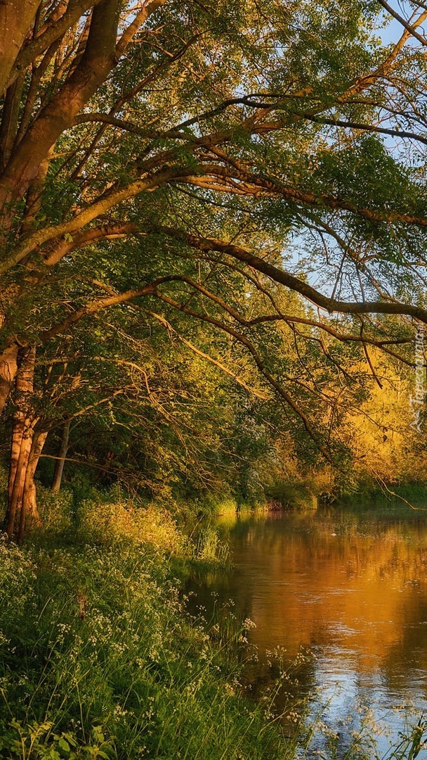 Edytor tapety: Pochylone drzewa nad rzeką Great Ouse