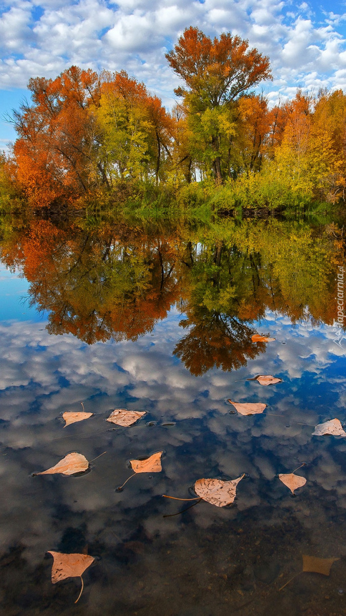 Edytor tapety: Pożółkłe drzewa w odbiciu jeziora