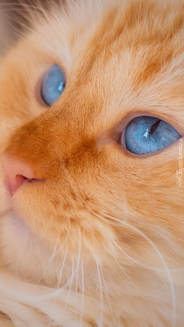 Edytor tapety: Głowa niebieskookiego kota w zbliżeniu