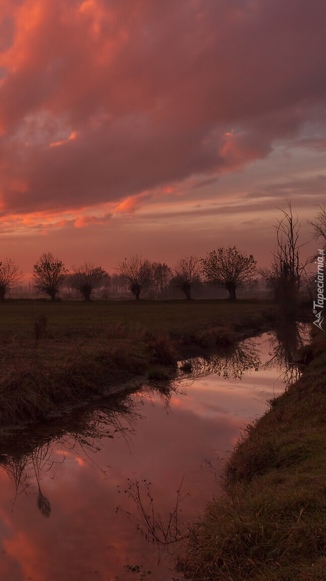 Edytor tapety: Rzeka na polu o zachodzie słońca