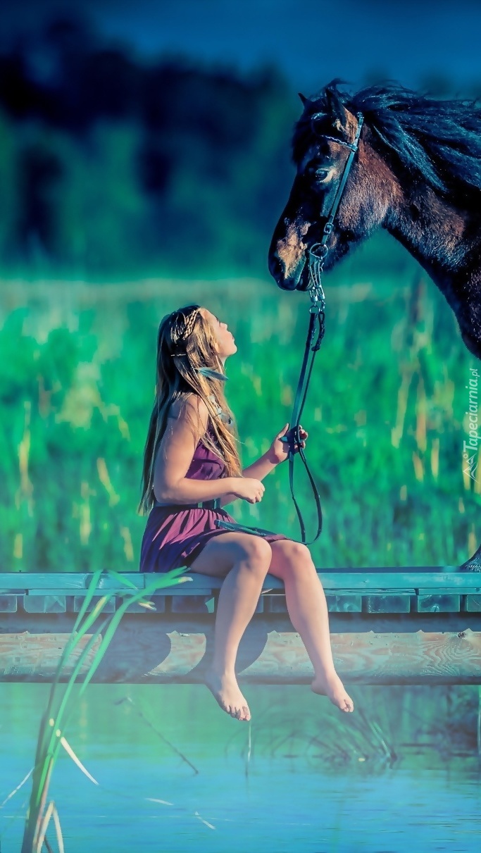 Edytor tapety: Dziewczyna z koniem na moście