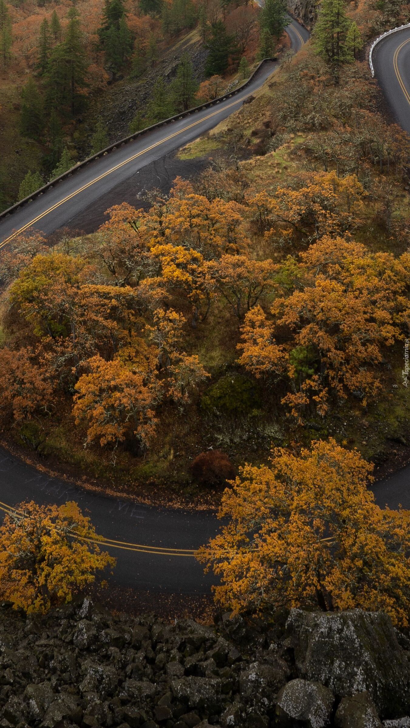 Edytor tapety: Kolorowe jesienne drzewa przy drodze