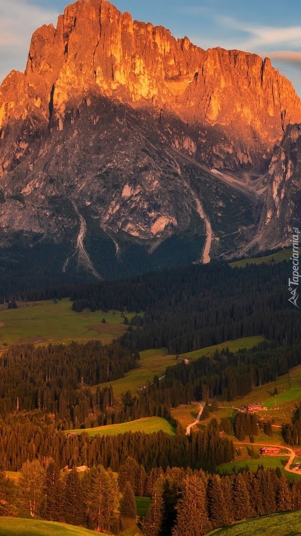 Edytor tapety: Rozświetlone słońcem góry Sassolungo