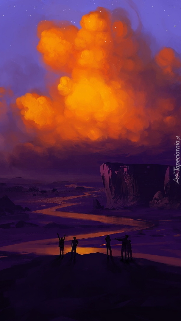 Edytor tapety: Rozświetlone chmury nad rzeką