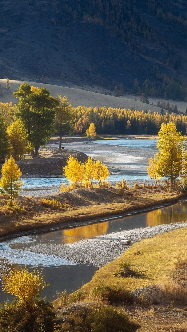 Edytor tapety: Pożółkłe drzewa nad rzeką
