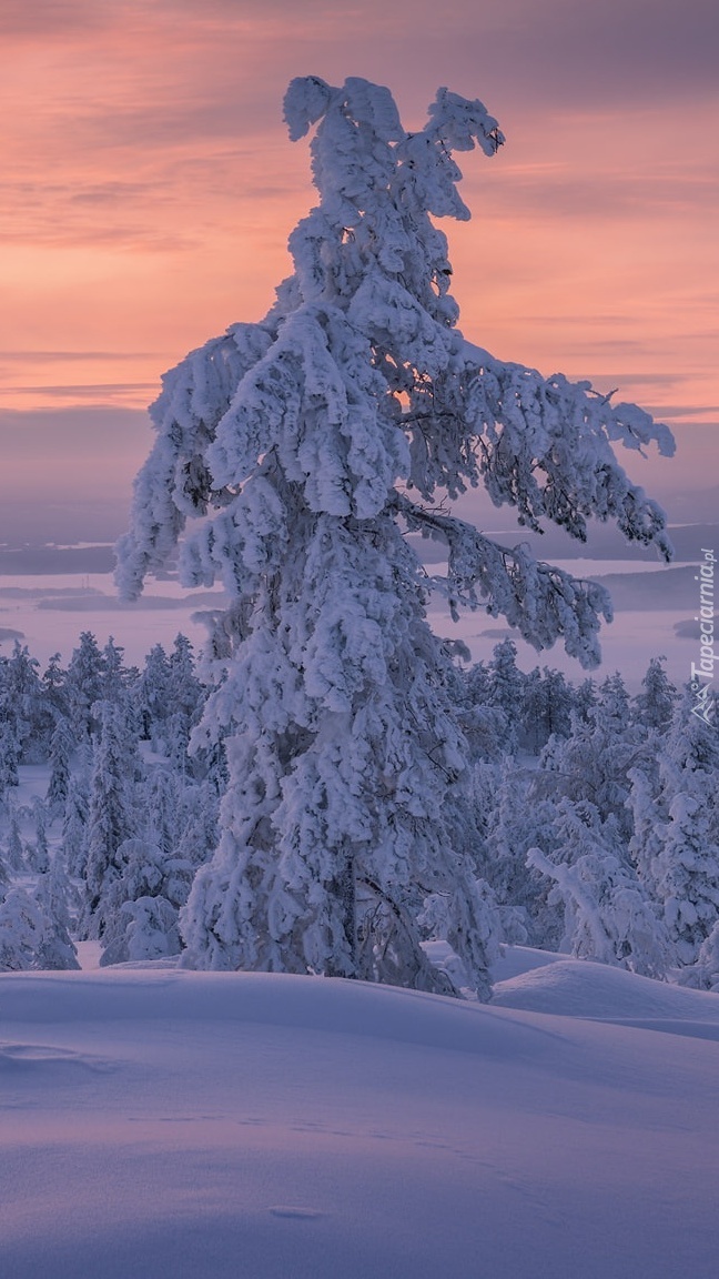 Edytor tapety: Zaśnieżone drzewo w zaspie