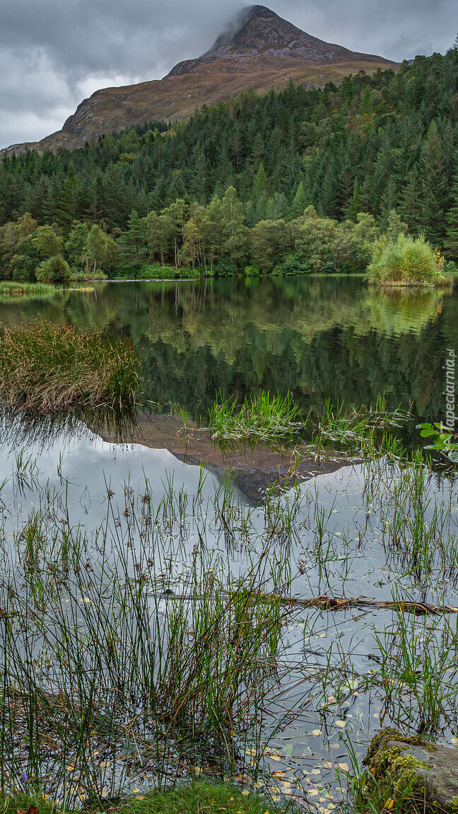 Edytor tapety: Las nad górskim jeziorem