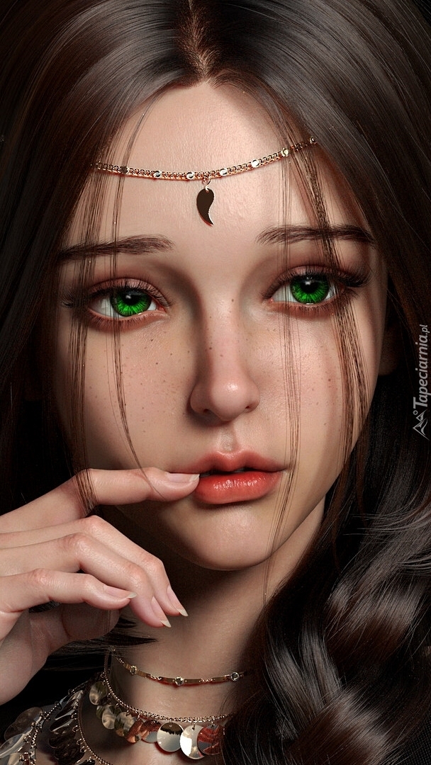 Edytor tapety: Długowłosa zielonooka dziewczyna