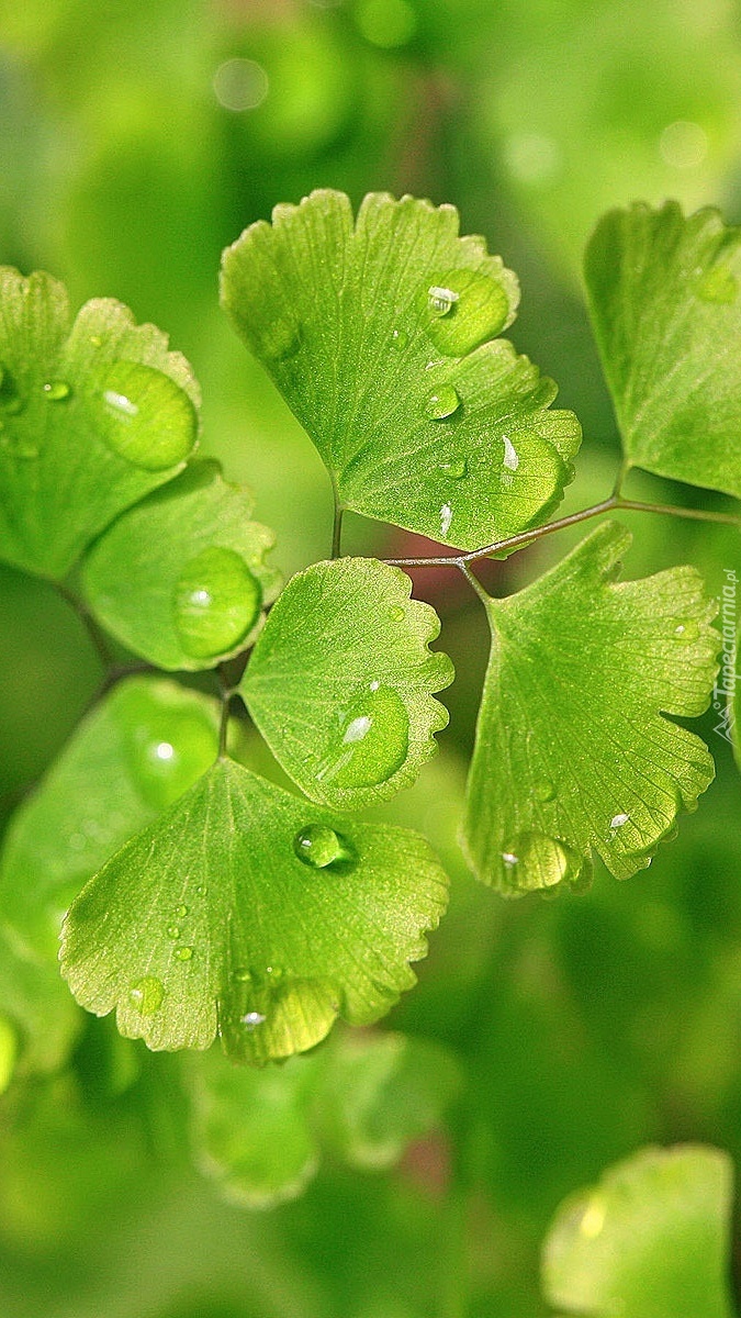 Edytor tapety: Krople deszczu na miłorzębie