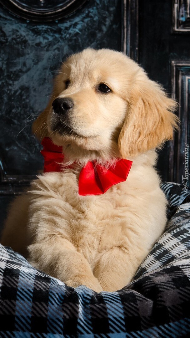 Edytor tapety: Szczeniak golden retriever na poduszce