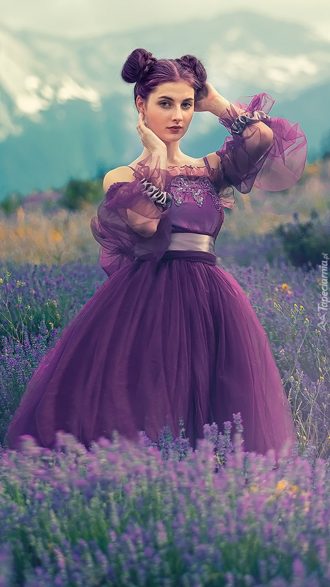 Edytor tapety: Kobieta na polu lawendy