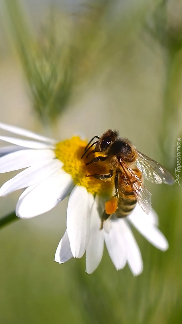 Edytor tapety: Pszczoła na kwiatku rumianku