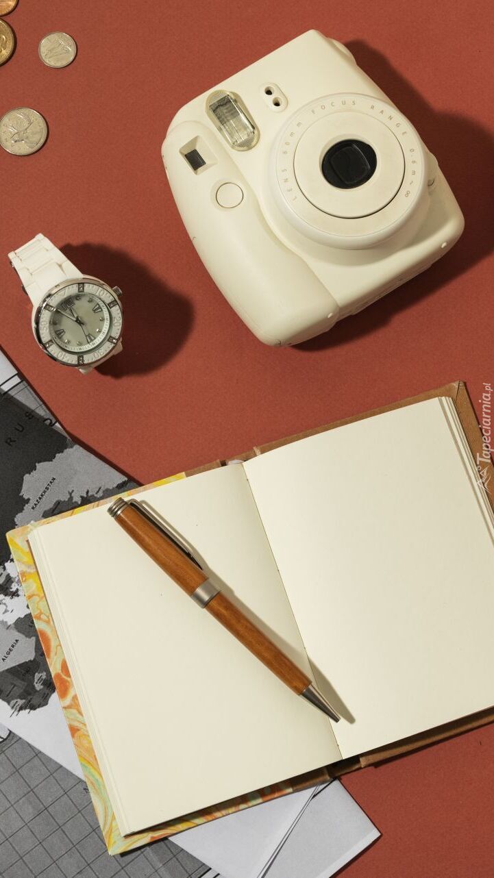 Edytor tapety: Aparat fotograficzny obok notesu