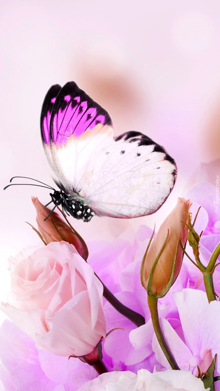 Edytor tapety: Motylek muskający kwiatek