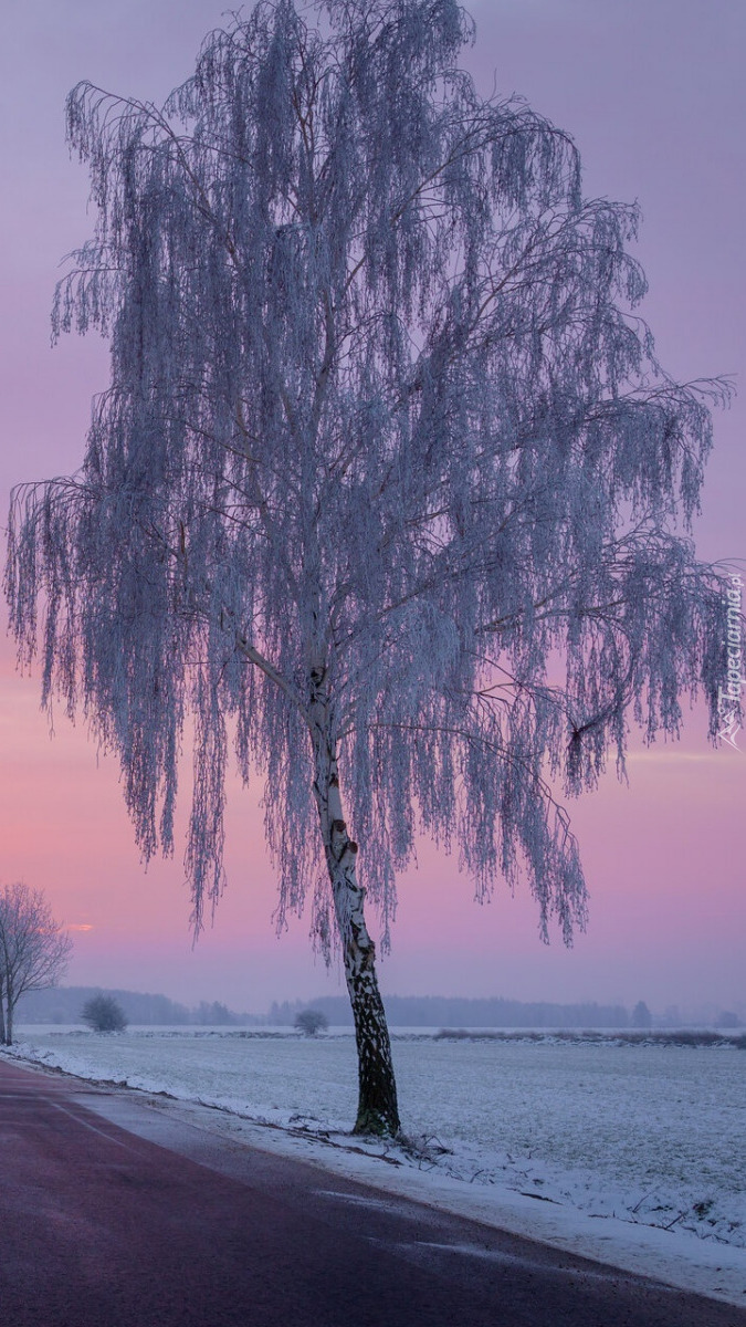 Edytor tapety: Oszronione drzewo pod zaróżowionym niebem