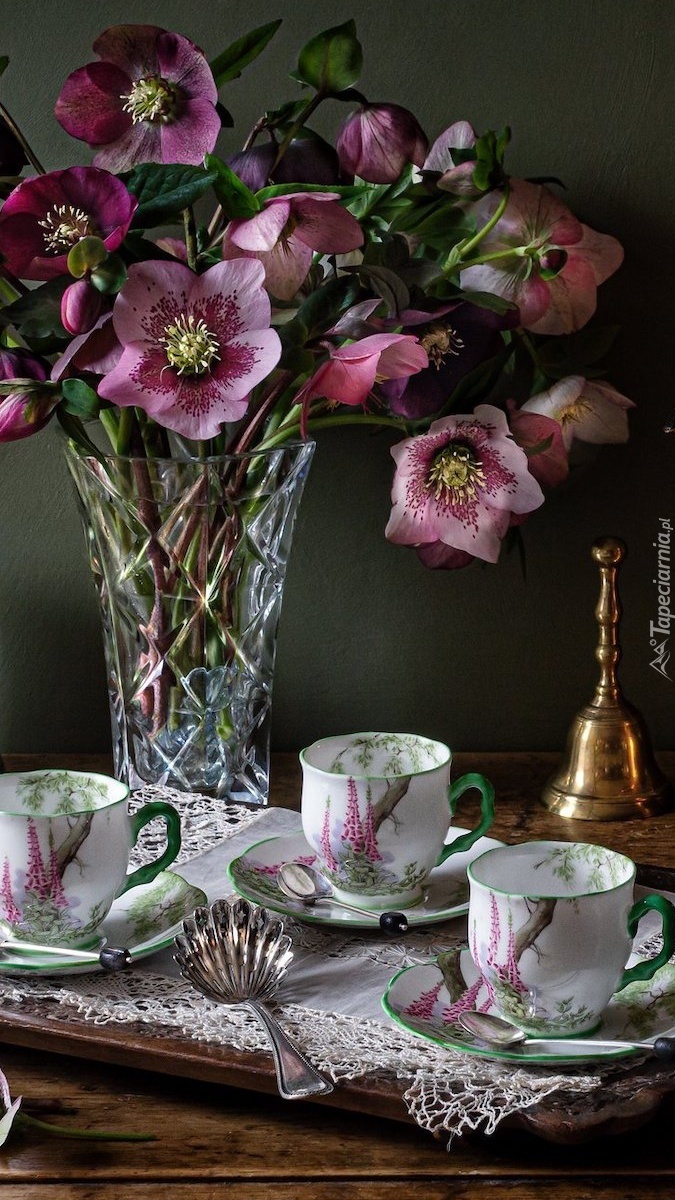 Edytor tapety: Filiżanki i ciemierniki w wazonie