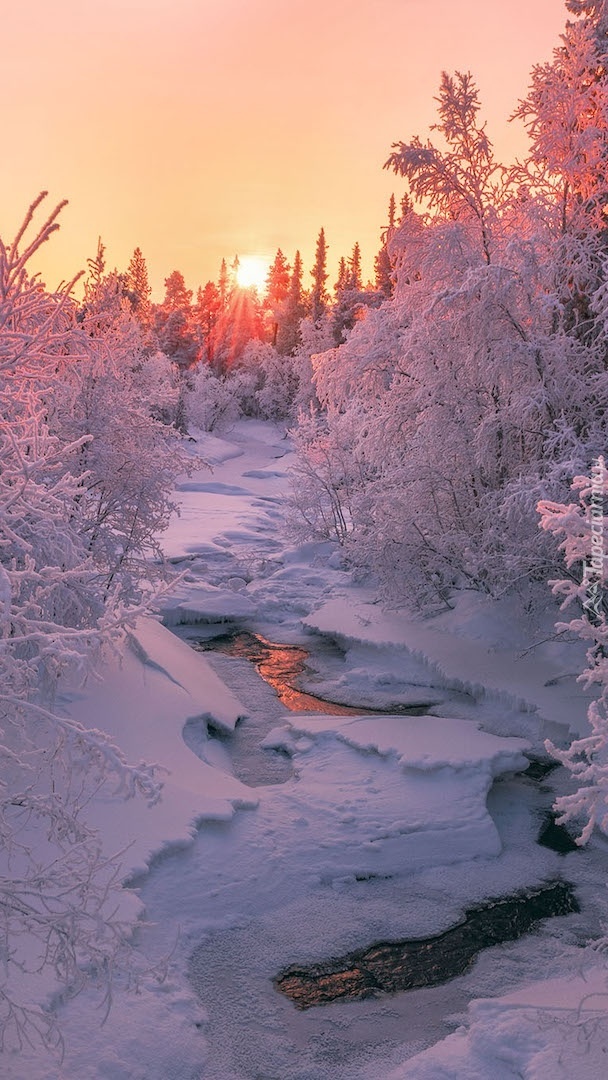 Edytor tapety: Rzeka w zimowym lesie
