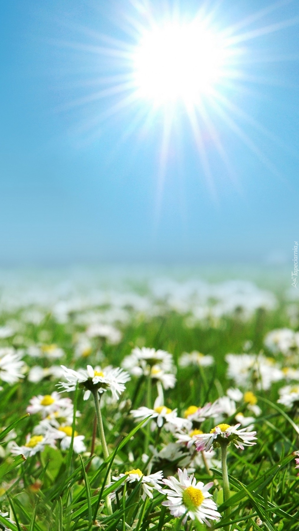 Edytor tapety: Wygrzewające się w słońcu stokrotki