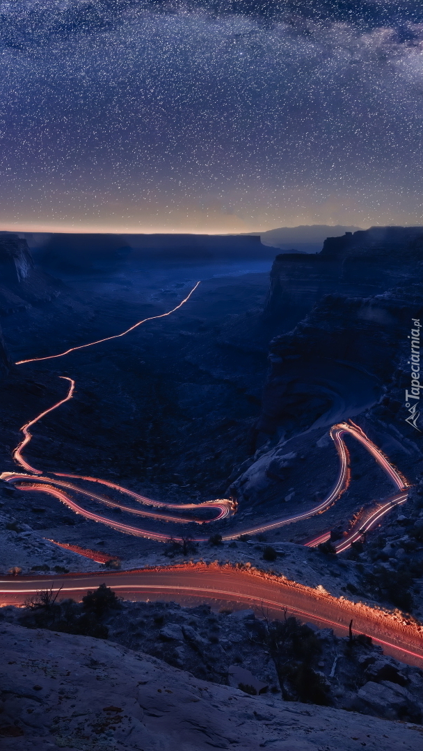 Edytor tapety: Rozświetlona droga pod gwiazdami