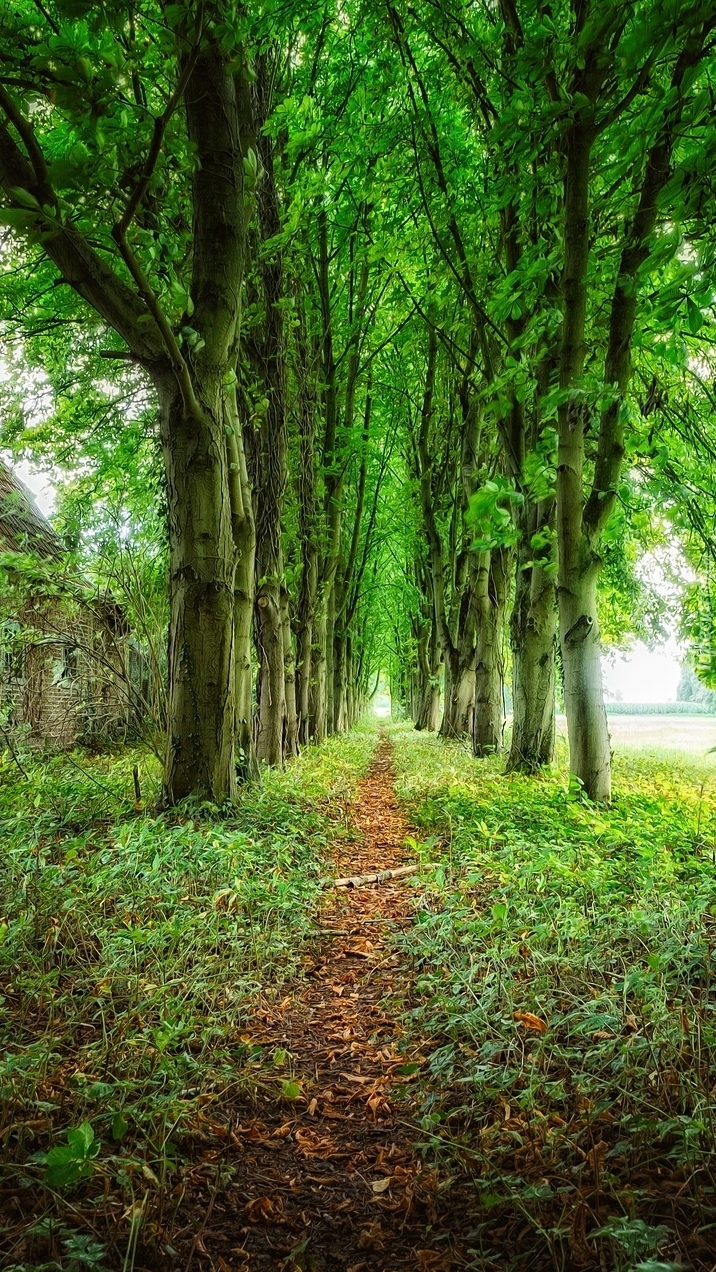Edytor tapety: Ścieżka pośród zielonych drzew