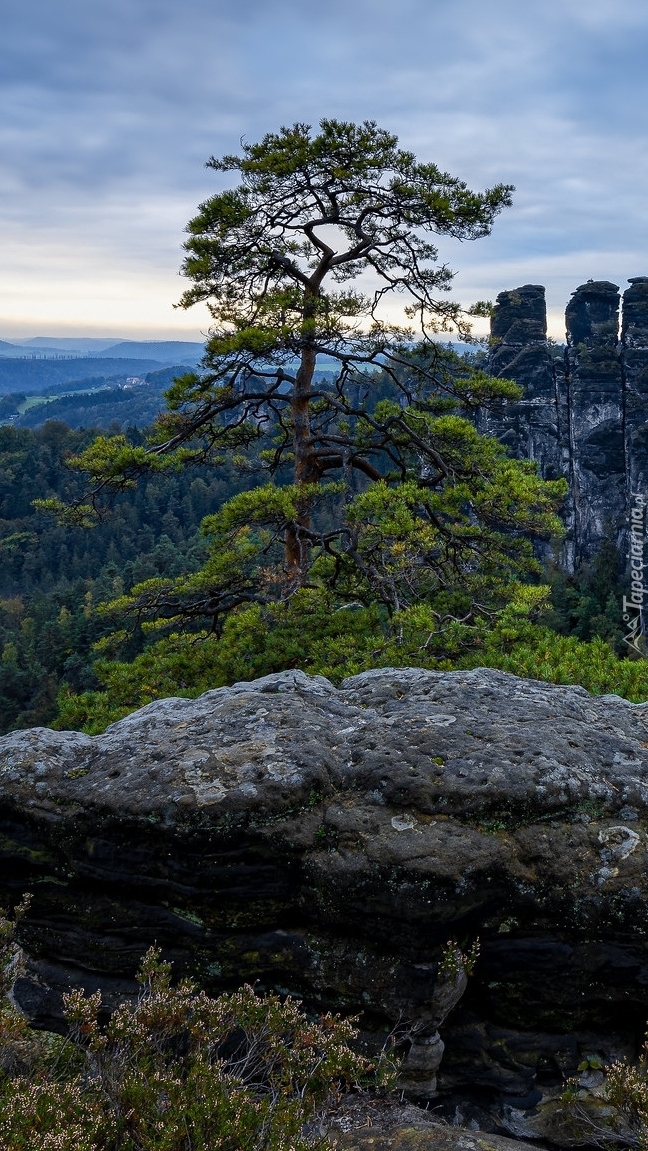 Edytor tapety: Sosna na skale w Górach Połabskich