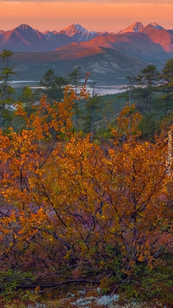 Edytor tapety: Jesienne krzewy na tle Gór Kołymskich