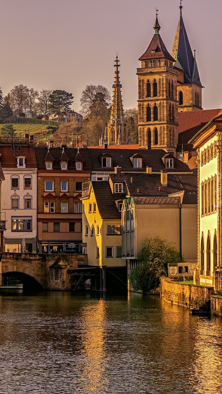 Edytor tapety: Domy i kościół nad rzeką Neckar