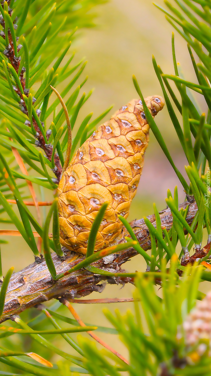 Edytor tapety: Gałązka sosny z szyszką