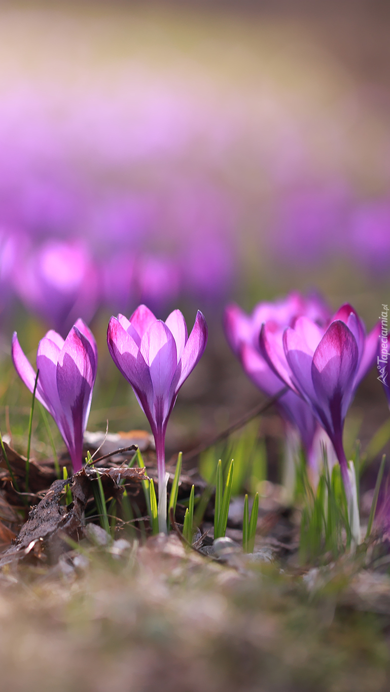 Edytor tapety: Rozświetlone fioletowe krokusy