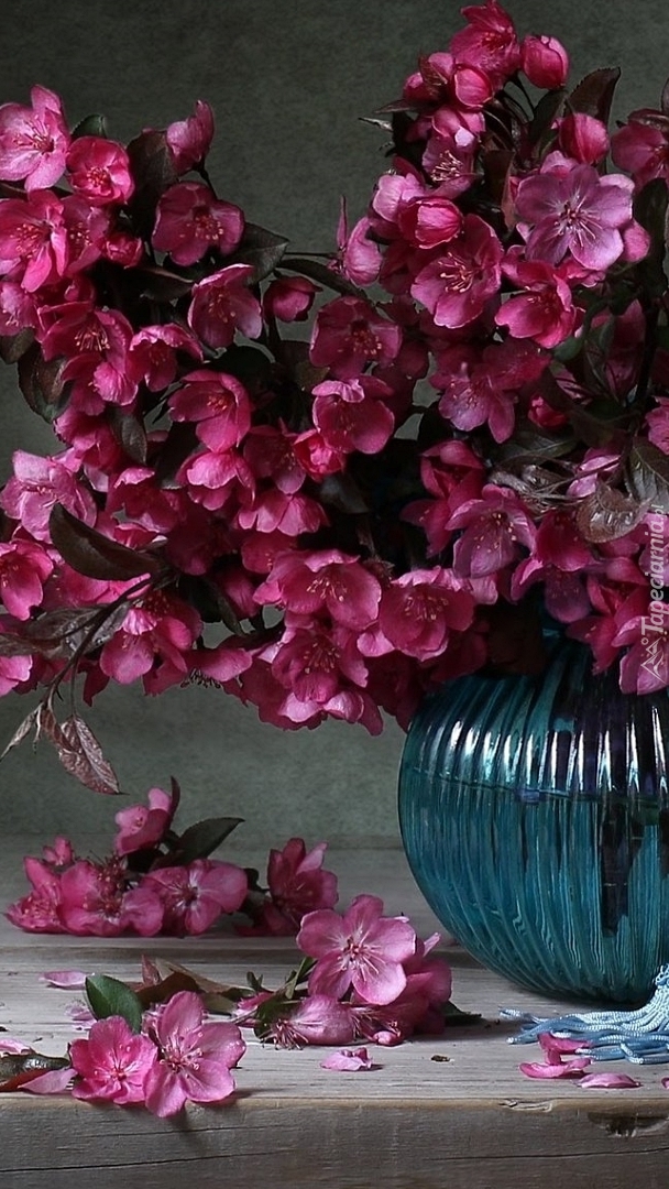 Edytor tapety: Gałązki z różowymi kwiatami w wazonie