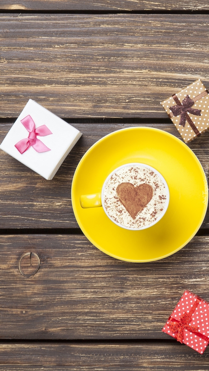 Edytor tapety: Prezenty obok filiżanki kawy