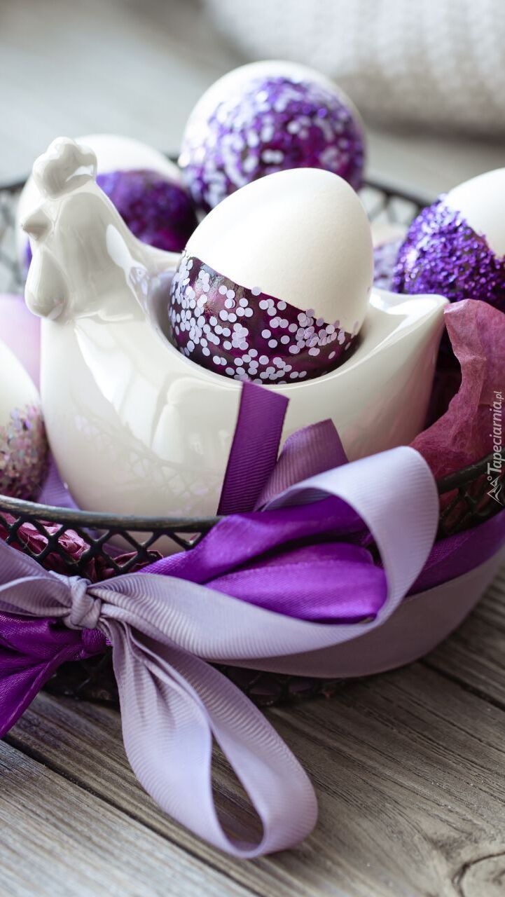Edytor tapety: Kogucik z pisankami w metalowym koszyczku