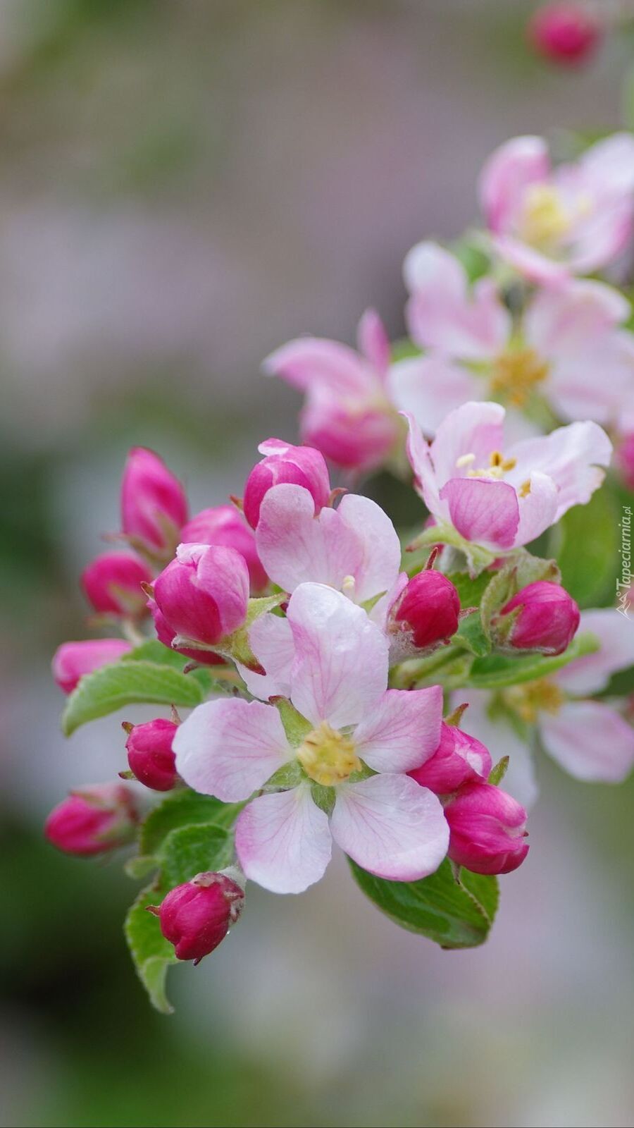Edytor tapety: Gałązka z kwiatami i pąkami jabłoni
