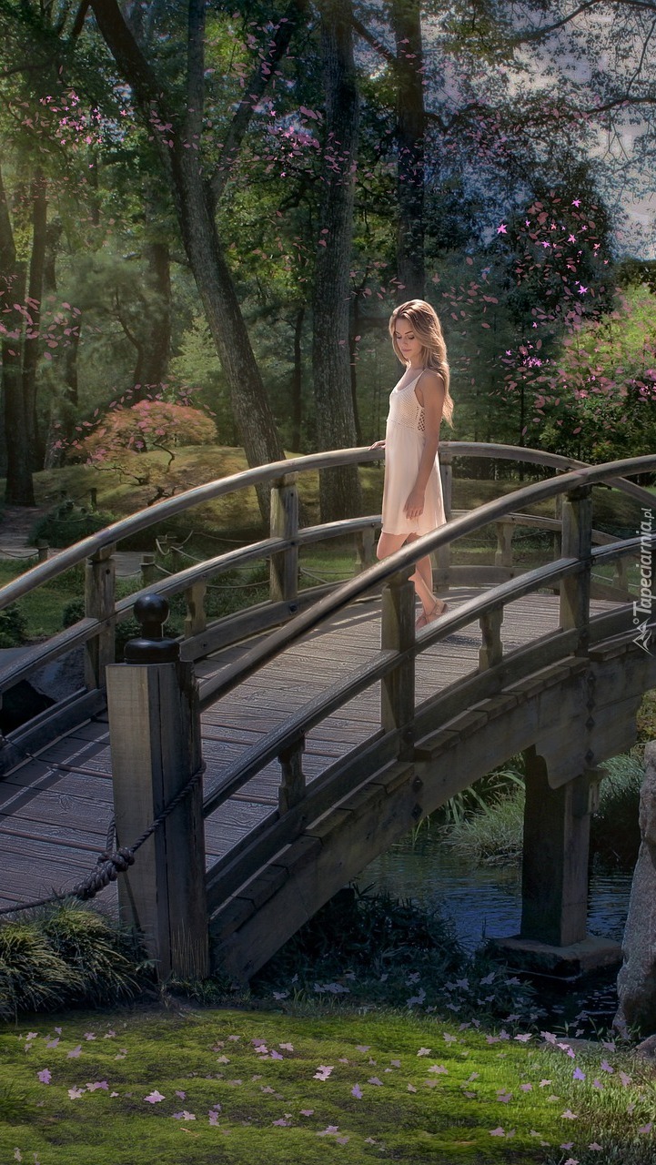 Edytor tapety: Blondynka w sukience na mostku