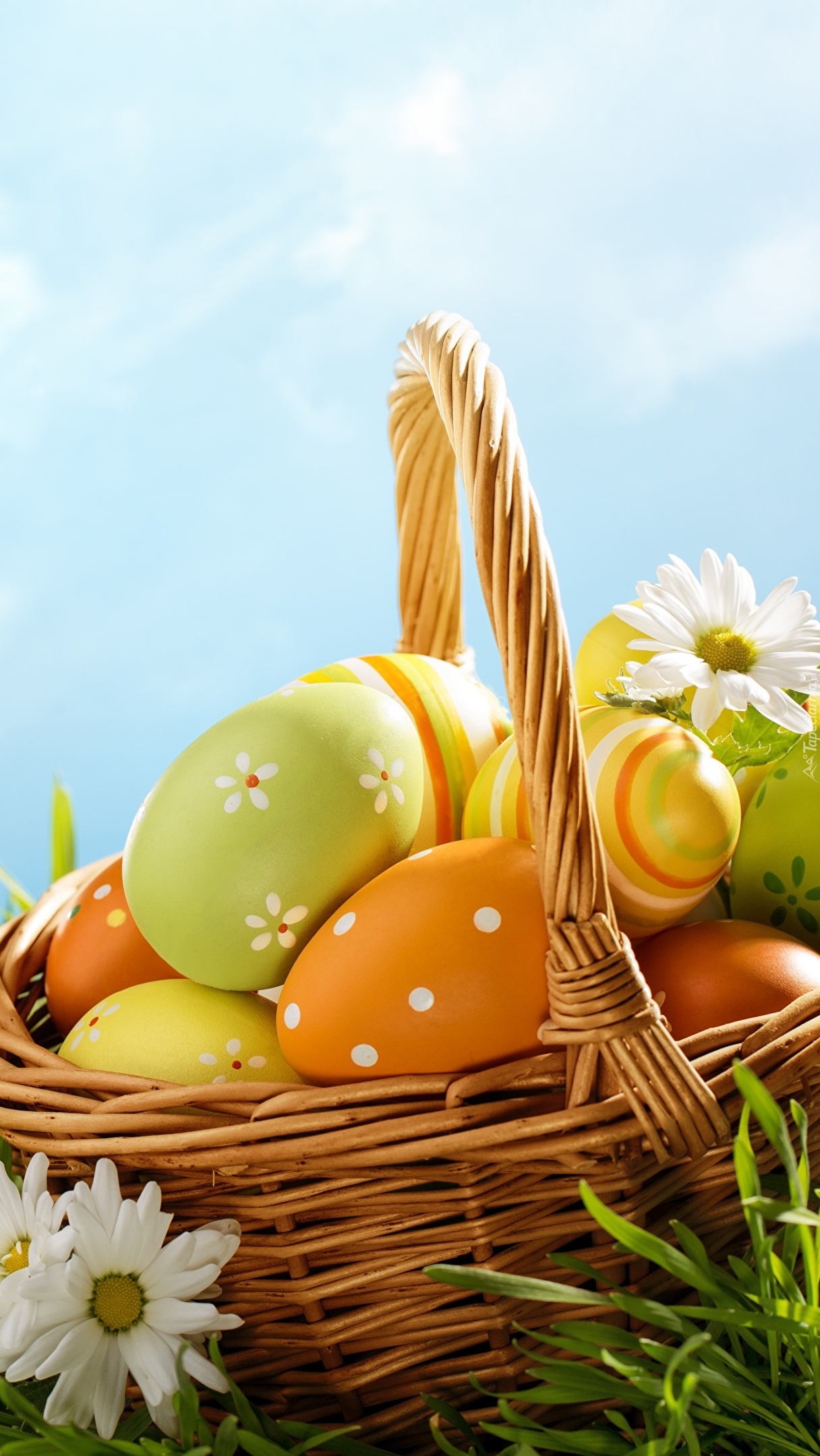 Edytor tapety: Koszyk z kolorowymi pisankami