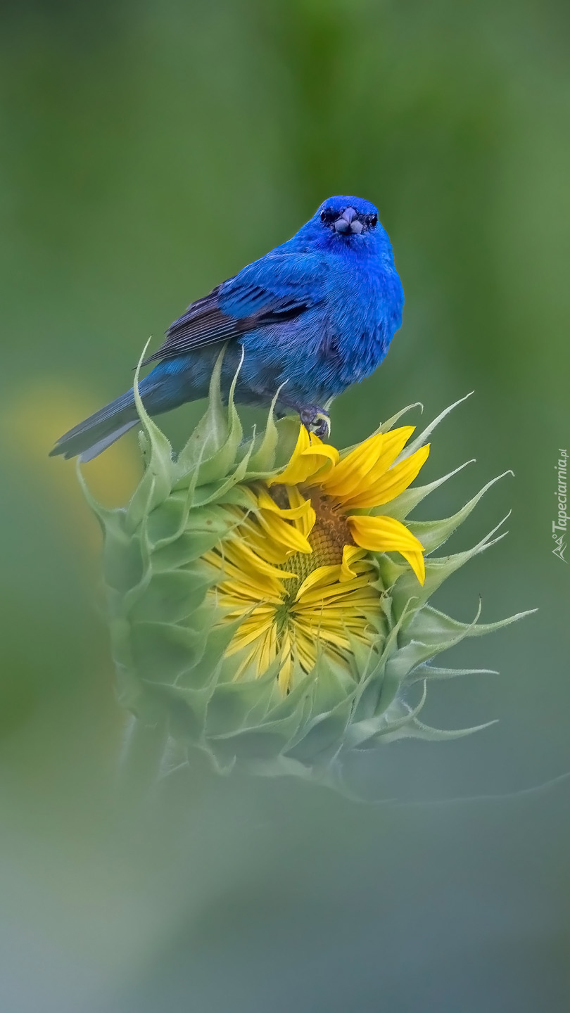 Edytor tapety: Łuszczyk indygowy na nierozkwitniętym słoneczniku