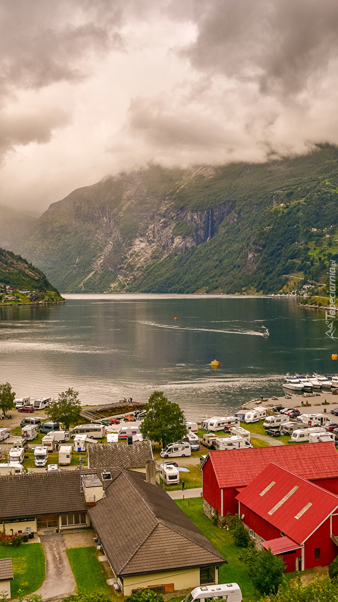 Edytor tapety: Miasteczko i fiord Geirangerfjorden w Norwegii
