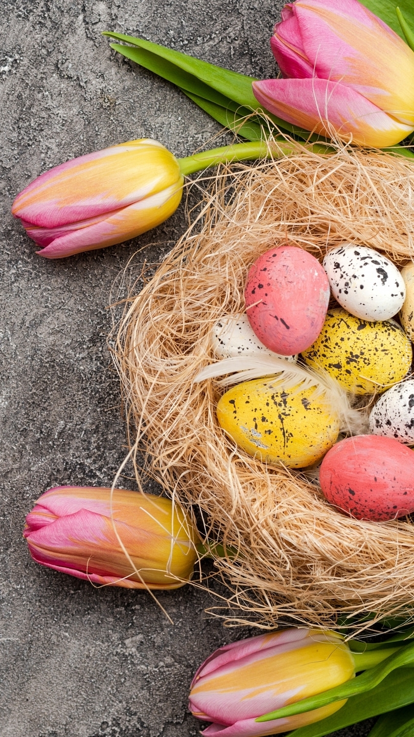 Edytor tapety: Tulipany i pisanki w gnieździe