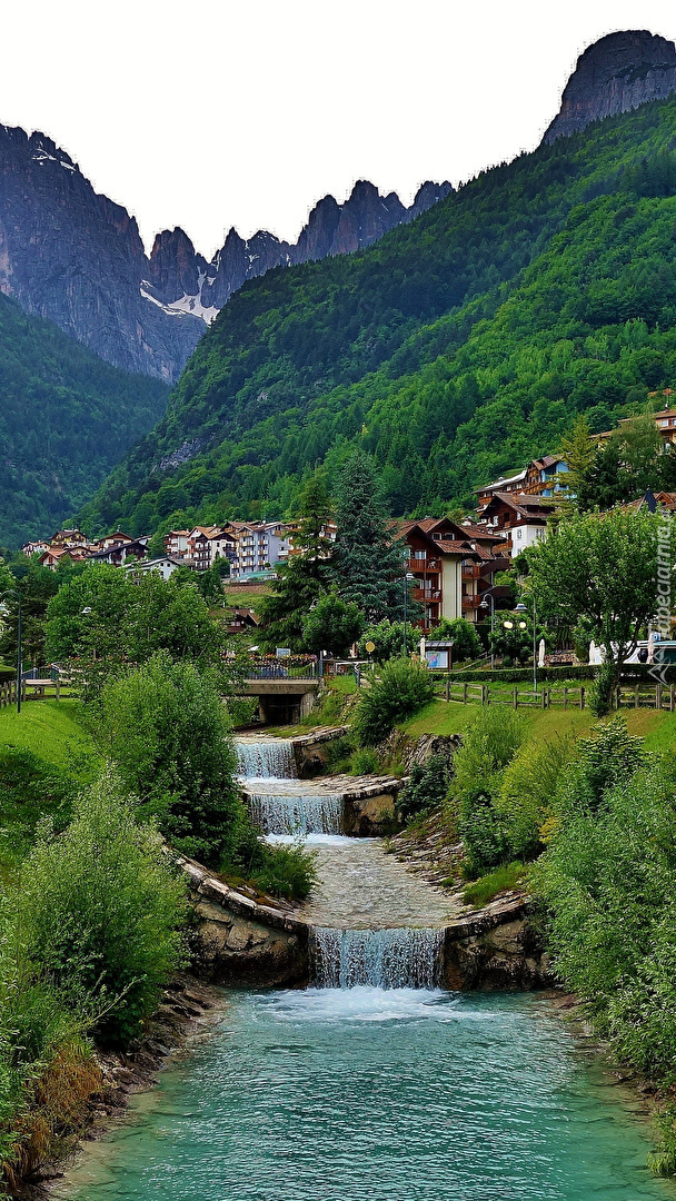 Edytor tapety: Rzeka na tle miejscowości Molveno