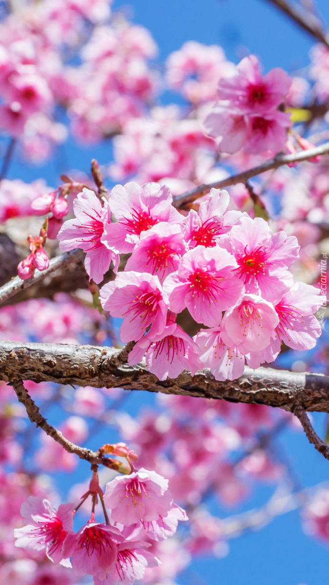 Edytor tapety: Gałązki z różowymi kwiatami wiśni