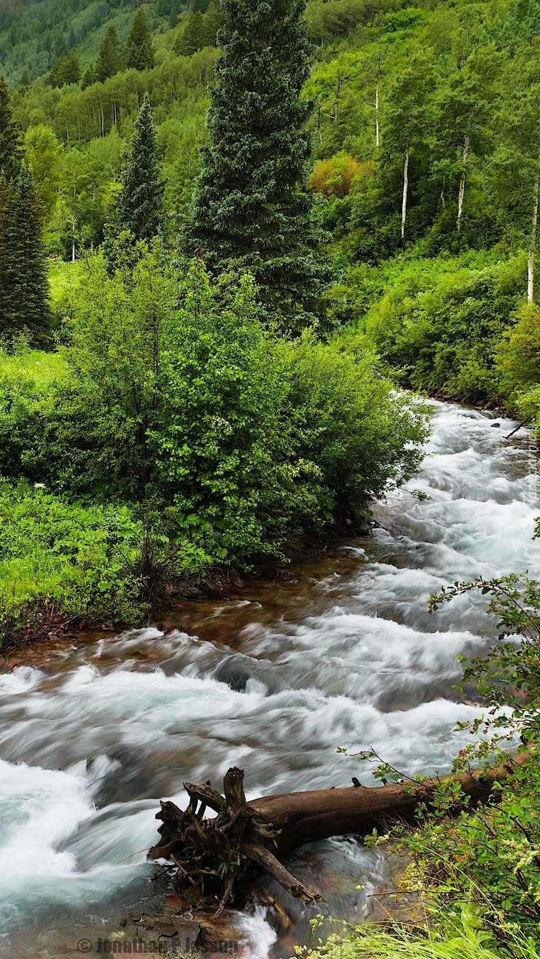 Edytor tapety: Zielone drzewa nad górską rzeką