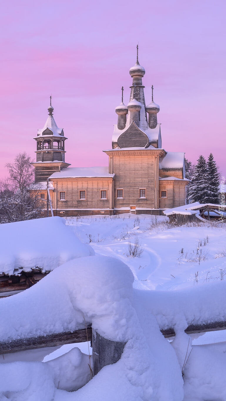 Edytor tapety: Ośnieżona cerkiew w Rosji