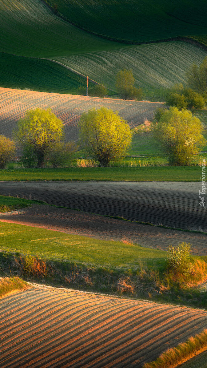 Edytor tapety: Drzewa i pola na wzgórzach