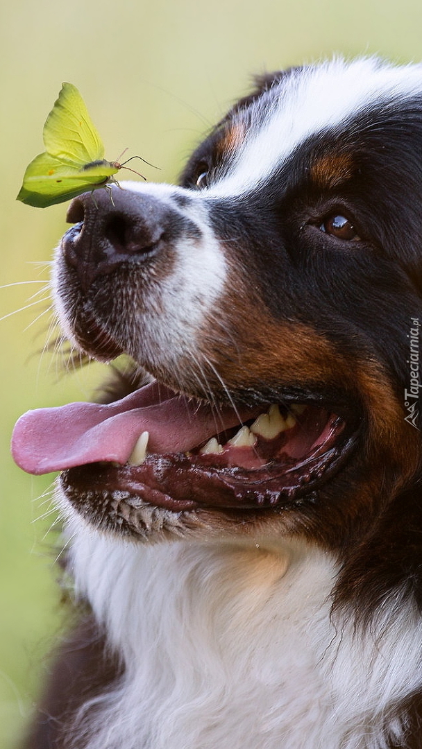 Edytor tapety: Motyl na nosie berneńskiego psa pasterskiego